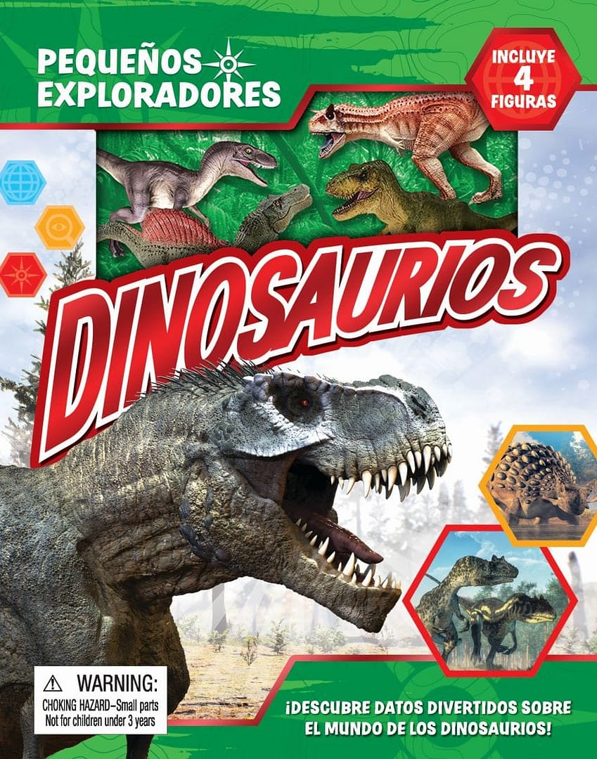 Pequeños exploradores incluye datos fascinantes y cuatro figuras realistas. ¡Lee el libro para descubrir los detalles y echa a volar tu imaginación!